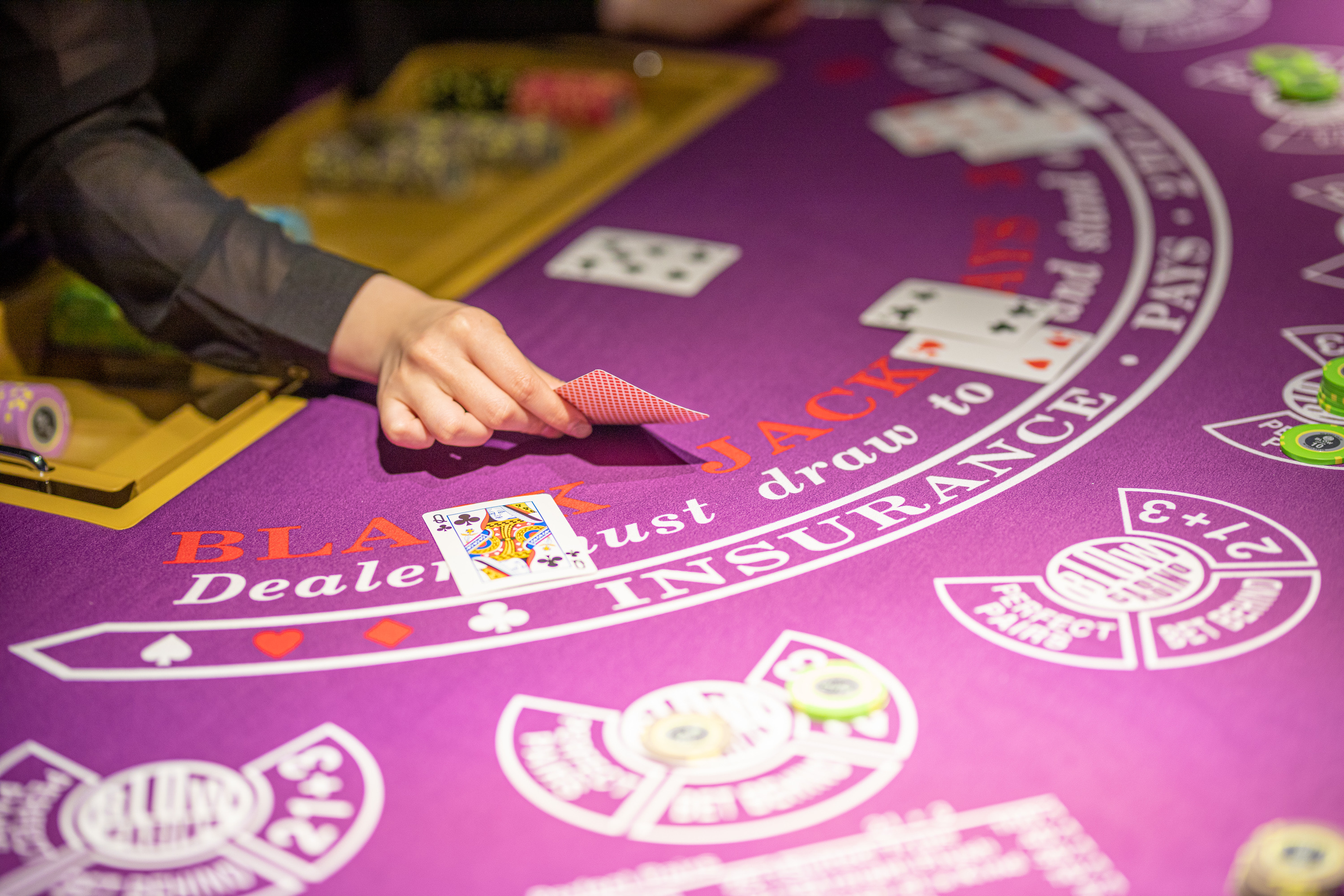| 業務内容 | 〈具合的には...〉 ◆各種ディーラー業務 ポーカー、ブラックジャック、バカラ ◆ホール業務 お客様のドリンク作り、お客様受付・案内などなど しっかりした研修制度があるので、初心者も安心! 必要なものは少しの勇気とやる気だけ! ◆経験・資格等 →未経験OK、学生OK、フリーター歓迎、学歴不問、ブランクOK、経験者優遇 |